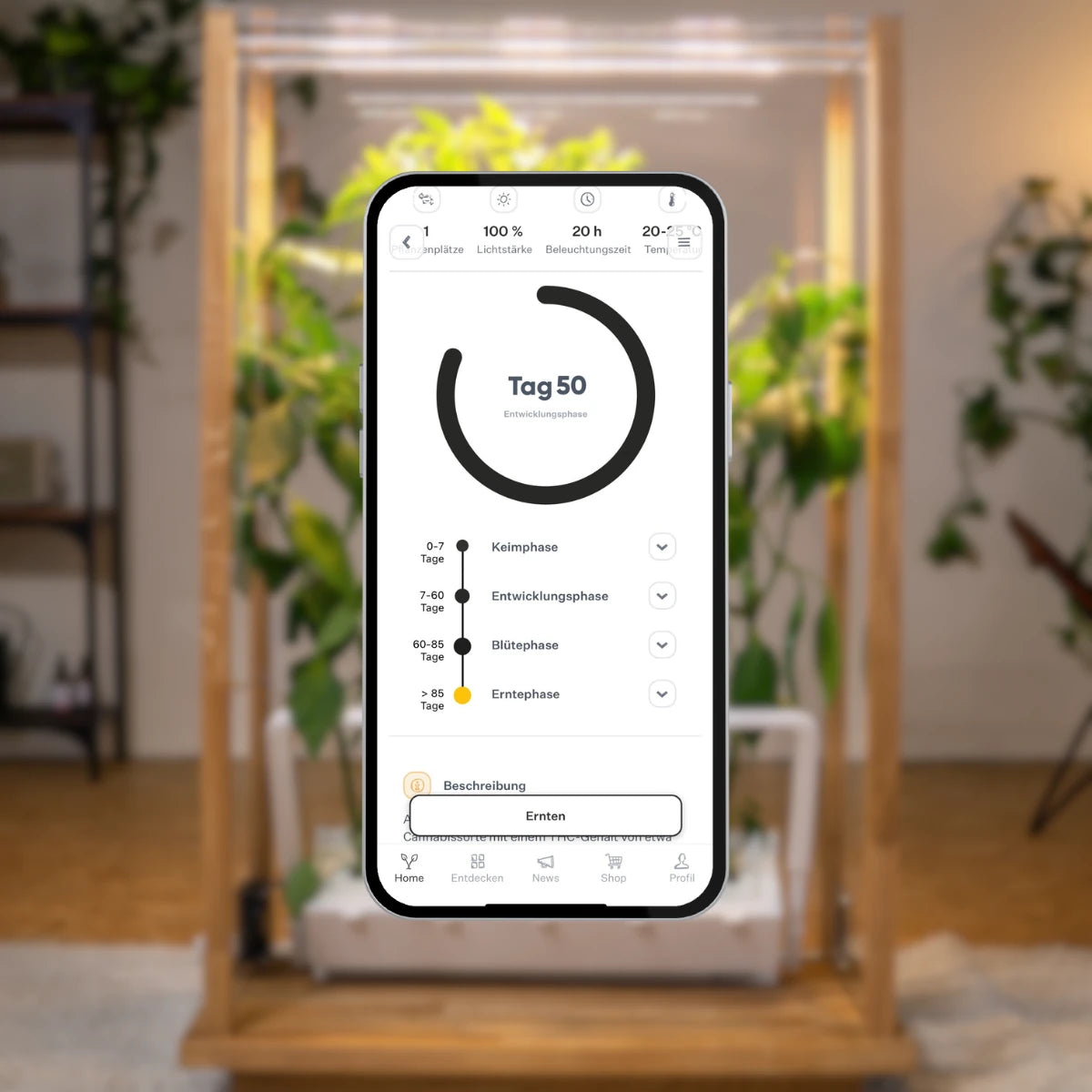 Die weegreens-App navigiert dich durch deinen gesamten Grow und gibt dir genaue Anweisungen, wann du was zu tun hast. Du wirst benachrichtigt, wenn es Zeit ist, das Wasser zu wechseln, welchen Dünger du verwenden musst und wann deine Pflänzchen bereit sind, geerntet zu werden. Dies sind nur einige von vielen Features, welche darauf warten, dir deinen Anbau so einfach und entspannt wie nur möglich zu machen.