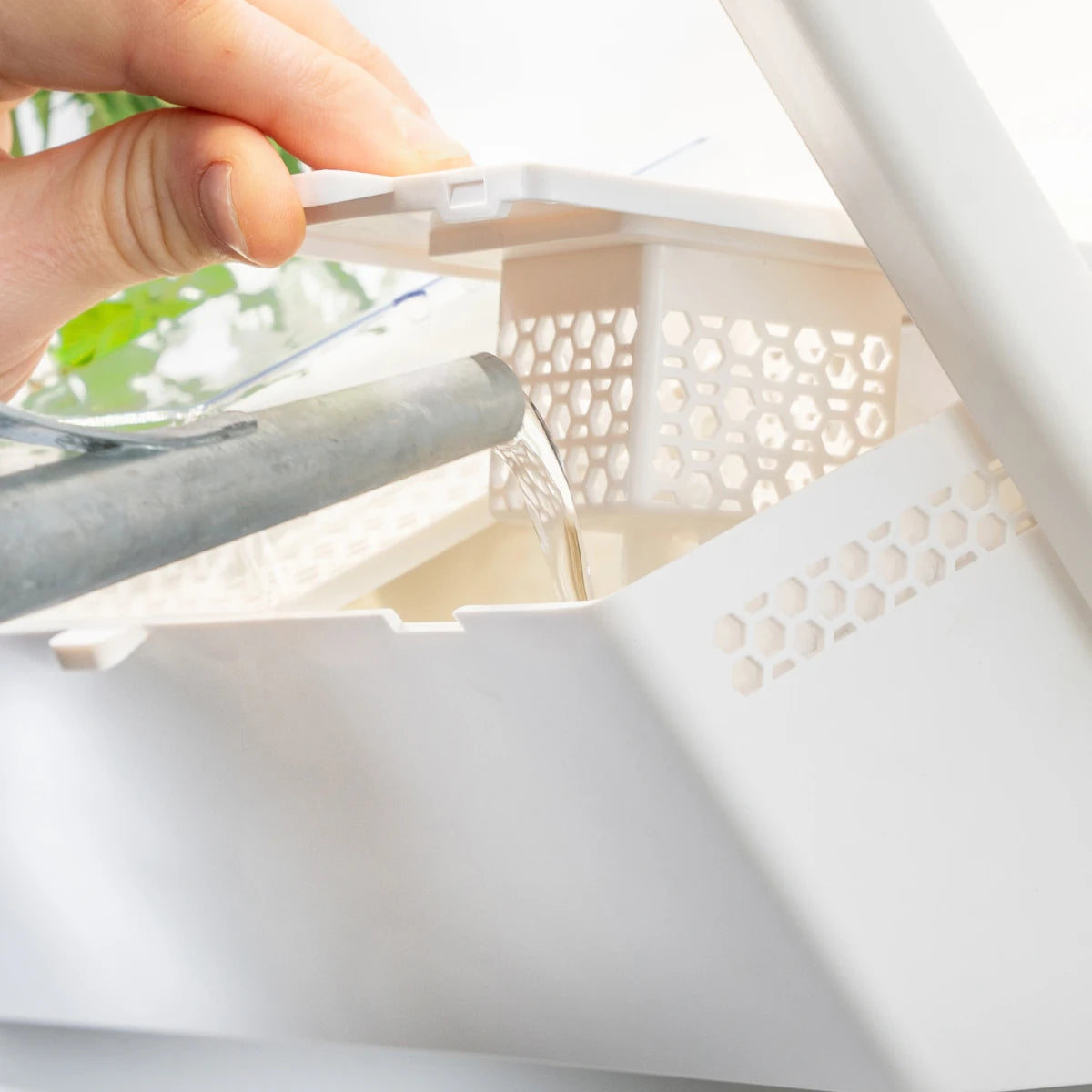 Zu Beginn wird der Wassertank einmal aufgefüllt, was für die ersten 2 - 3 Wochen reicht. Danach sollte wöchentlich bis täglich überprüft werden, ob noch genügend Wasser vorhanden ist. Aber keine Angst, die weegreens App erinnert dich daran, den Wasserstand zu prüfen.